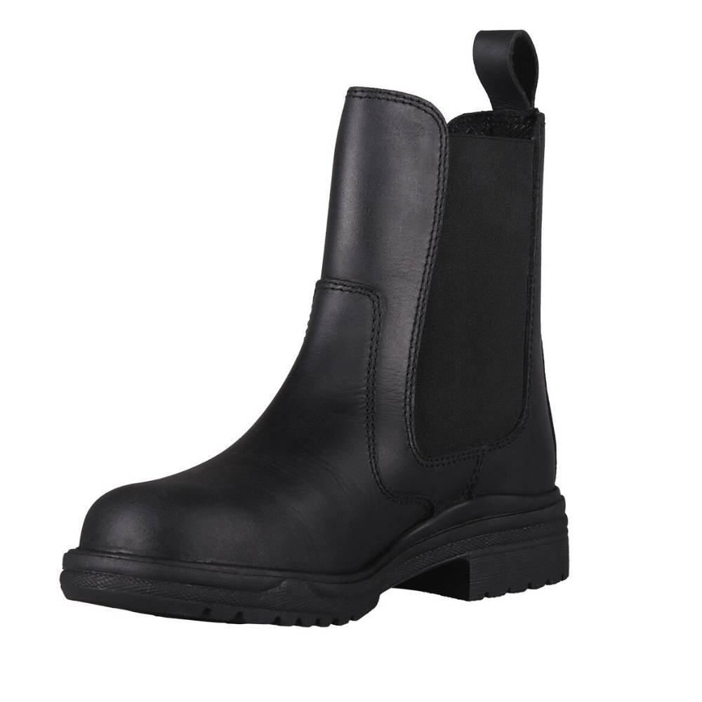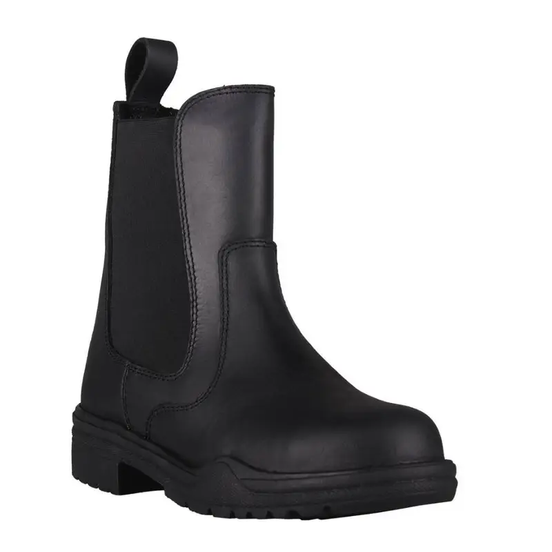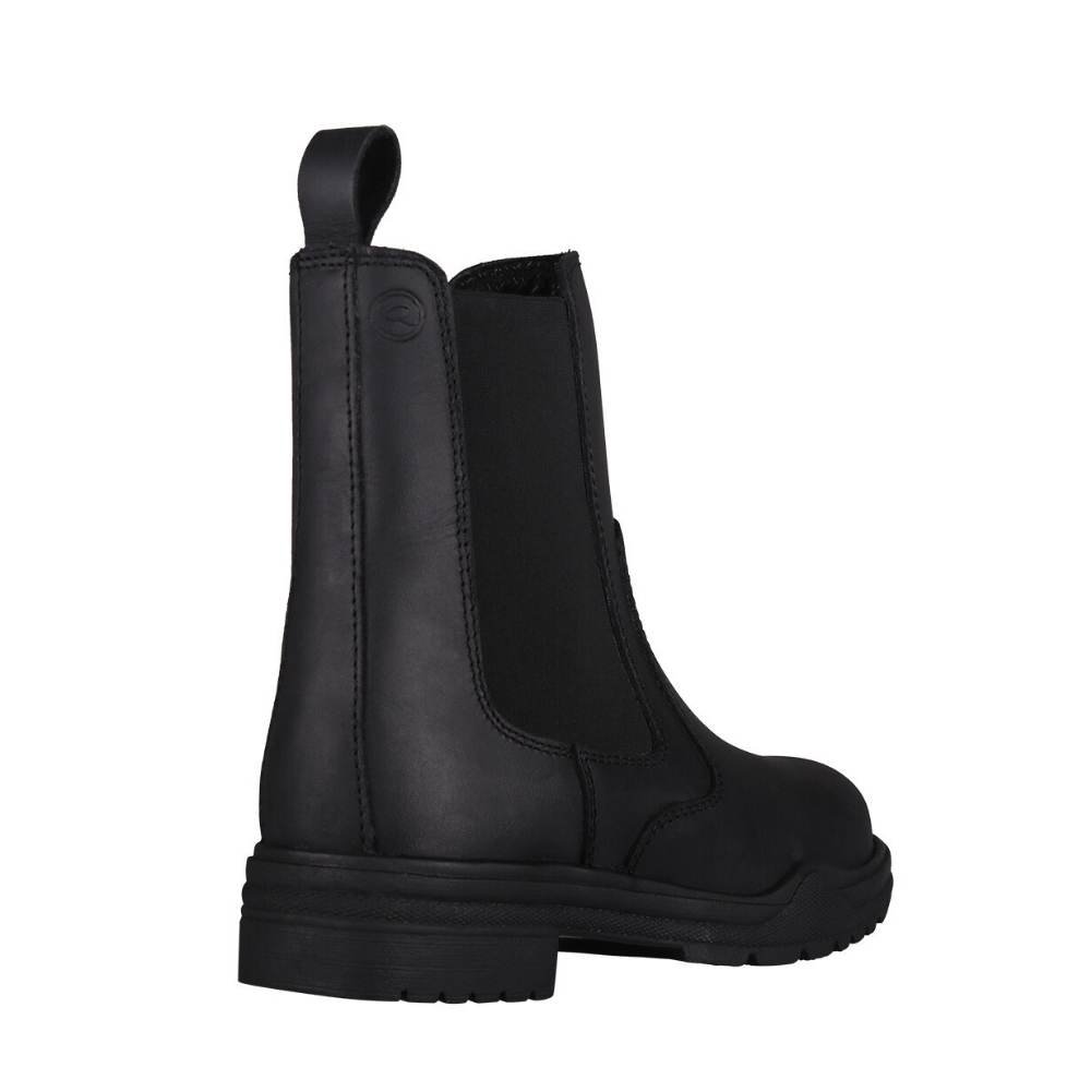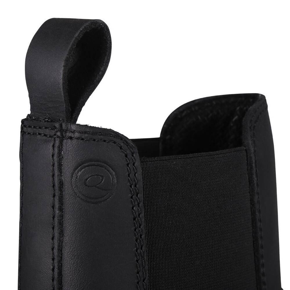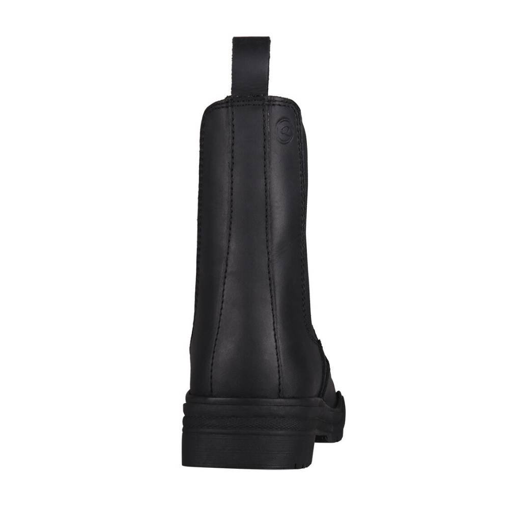 God staldstøvle i læder med elastik i begge sider som gør den nem at få af og på og sikrer støvlen sidder godt til omkring anklen. Stroppen bag på støvlen gør den nemmere at tage på.